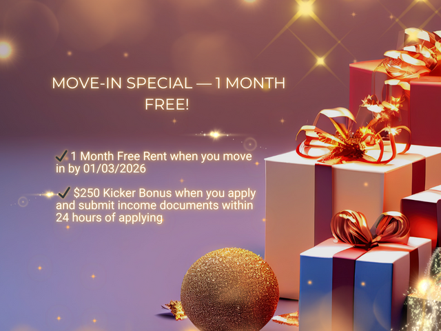 ✔ 1 Month Free Rent when you move in by 01/03/2026 ✔ $250 Kicker Bonus when you apply and submit income documents within 24 hours of applying